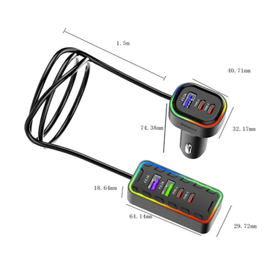 66W car charger with integrated cable (800 mm), featuring USB-A and USB-C ports.