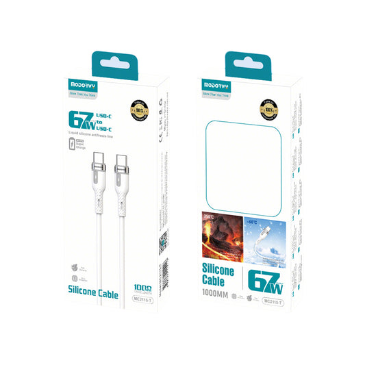 67 Watt Type-C to Type-C charging cable, made of silicone material, white